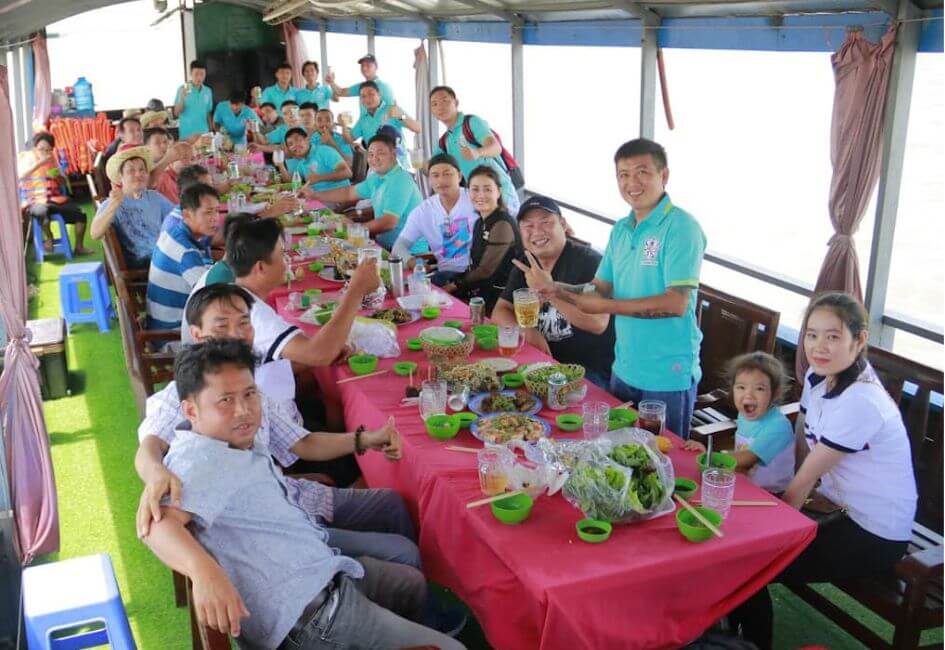 Du thuyền trên sông Mekong, ngắm nhìn các làng nuôi cá bè trên sông và 4 cù lao Tứ linh: Long – Lân – Quy – Phụng.